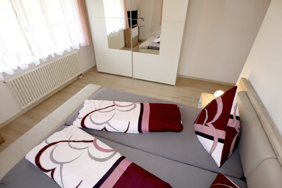 1. Stock mit Sonnenterasse. Im ersten Stock unseres Ferienhauses befindet sich auf 85 qm die Ferienwohnung A mit der großzügigen Sonnenterrasse, zwei Schlafzimmer inkl. Bettwäsche, Bad / WC ausgestattet mit Handtüchern, Küche und Wohn- und Esszimmer. Die Küche ist ausgestattet mit Spülmaschine, Kaffeemaschine, Kühlschrank mit Gefrierfach, Wasserkocher, Eierkocher, usw., damit es Ihnen an nichts fehlt. Im Wohnzimmer finden Sie ein 55 Zoll-TV mit Netflix und eine Stereoanlage vor. In den beiden Schlafzimmern (Doppelbetten) finden 4 Erwachsene und 2 Kinder einen Schlafplatz. Im Elternschlafzimmer ist ein zusätzliches TV-Gerät. Das Kinderzimmer hat ein Etagenbett. Je nach Wunsch, kann ein Kinderbett dazugestellt werden. Gerne stellen wir Ihnen auch einen Hochstuhl oder Wickeltisch zur Verfügung. Die Wohnung ist komplett mit Kindersicherungen an den Steckdosen versehen. Nichtraucherwohnung.